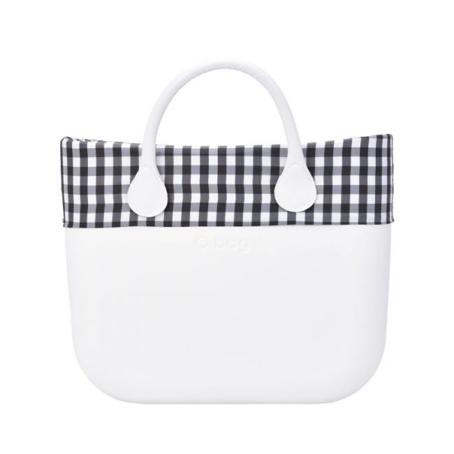 Bordo borsa O Bag in tessuto fantasia quadretti vichy, dal costo di 29 euro.