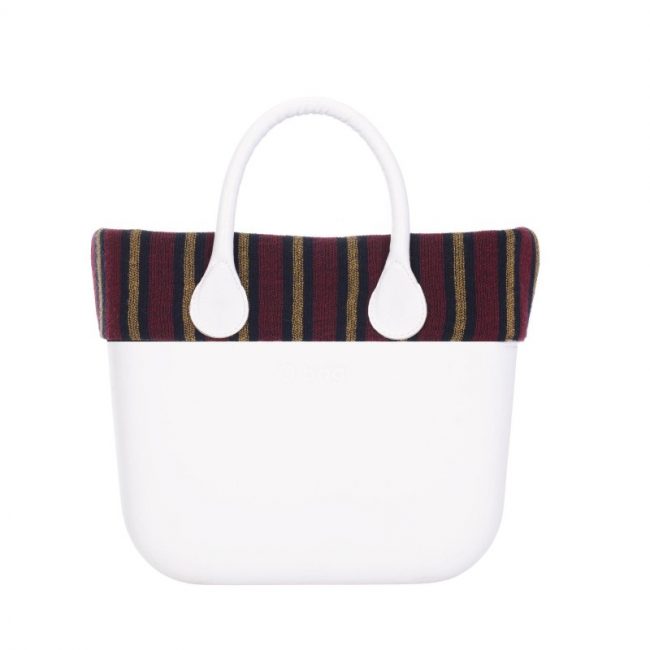 Bordo borsa O bag Mini in tessuto fantasia riga Regimental, dal prezzo di 34 euro.