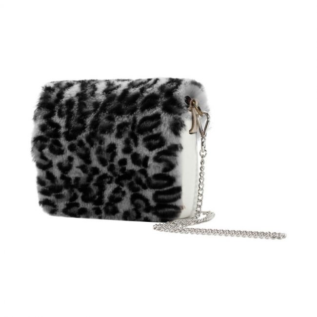 Pattina O Pocket in ecolapin animalier nei toni del grigio e del beige, dal prezzo di 44 euro.