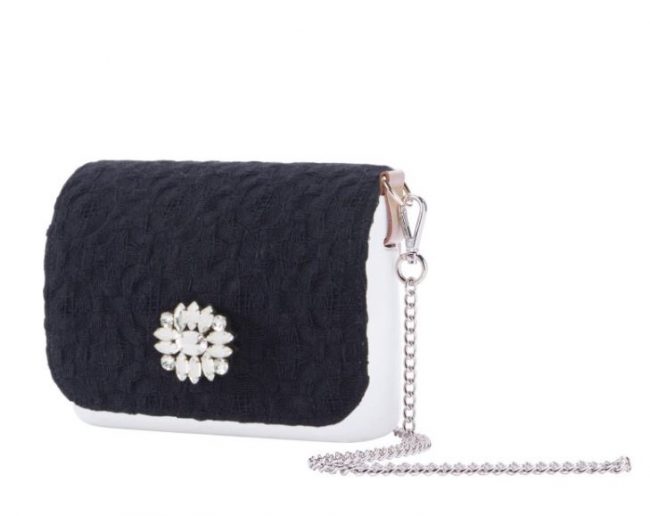 Pattina borsa O Pocket di O Bag in lana intrecciata con applicazione gioiello, dal prezzo di 39 euro.