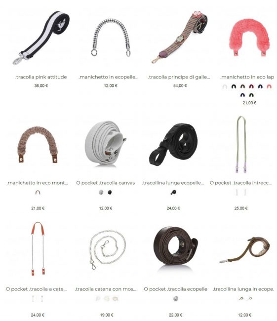 Ricordiamo che i prezzi appena citati sono solo delle pattine, per creare una borsa O Pocket (del resto come tutte le altre borse O Bag) bisogna agganciare assieme la scocca, la tracolla e la pattina.