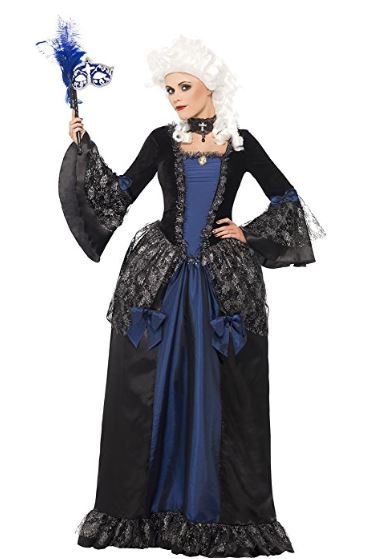 Se invece preferite un costume di Carnevale in stile Veneziano più opulente e sfarzoso, ecco la “classica” Dama Veneziana in sconto a 59,29 euro.