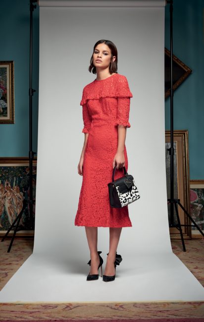 Cosa dire poi del raffinato ed elegante abito in pizzo color corallo con le maniche a 3/4 e la gonna longuette svasata, perfetto anche per una cerimonia?