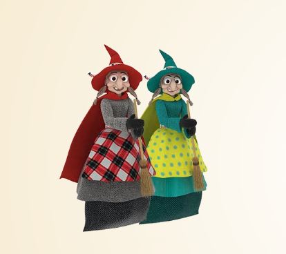 Le 2 bambole Befane Kinder 2019 da collezione contengono 7 pezzi: 1 confezione di Kinder Cioccolato, 2 Kinder Maxi, 2 Kinder Cereali e 2 Kinder Bueno.