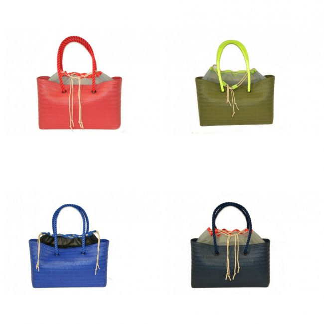 O Beach Classica nei colori verde oliva, rosso, giallo e blu, con manici lunghi in corda, costa 60 euro.