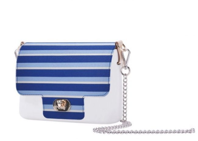 - Nuova pattina O Pocket di O bag a righe con fascia in pvc primavera estate 2018 prezzo 49 euro