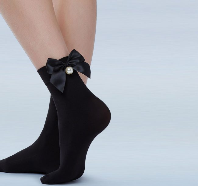 Il calzino corto Calzedonia con fiocco non può di certo mancare e per l’autunno inverno 2017 2018 s’impreziosisce anche di una raffinata perla bianca.