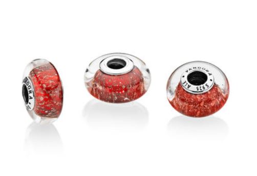 Charm in vetro di Murano rosso con accenti dorati, dal costo di 39 euro.