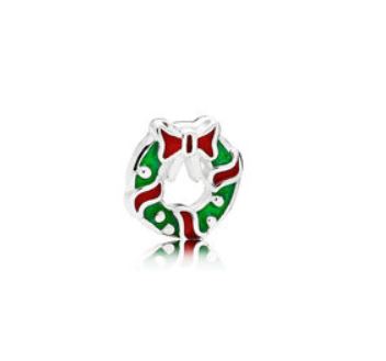 Charm pendente decorato da una ghirlanda natalizia in argento smaltato, dal prezzo di 29 euro.