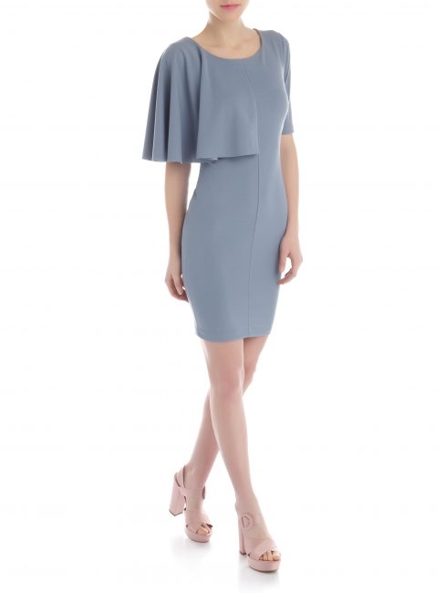 Tubino dallo stile minimal chic con le maniche al gomito e maxi volant sulla spalla di grande effetto.