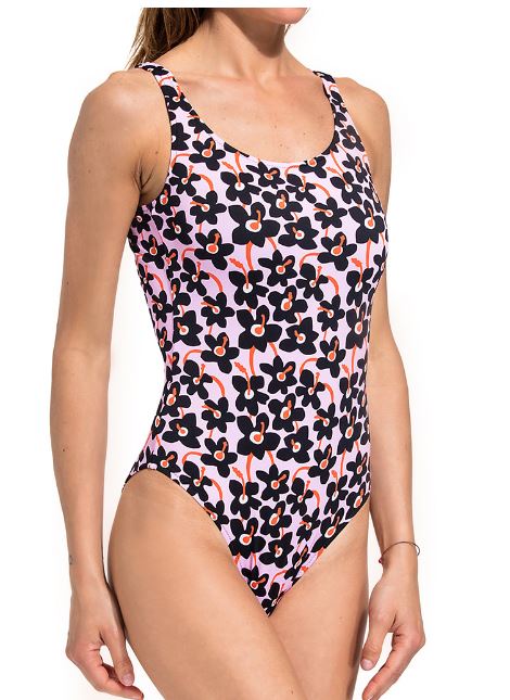 Costume intero modello Micol in lycra rosa dalla particolare stampa floreale.