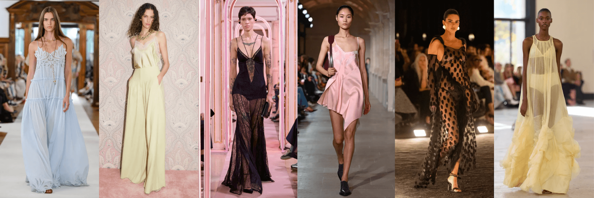 La tendenza del lingerie dressing raggiunge nuove vette. Slip dress in raso e seta vengono indossati come abiti da sera, body in pizzo fanno capolino sotto blazer trasparenti, e reggiseni decorativi si mostrano volutamente sotto maglie traslucide. L’estetica è sensuale ma mai volgare, giocando sul confine tra intimo e esterno.